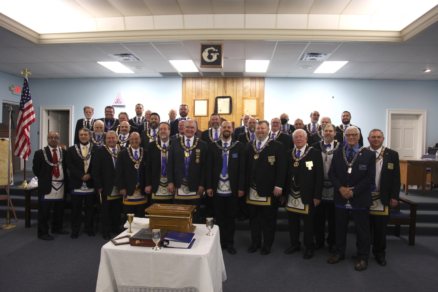 ![]() MWGM Jeffrey S. Foster, WM Wissam Itani and members of John Darling Officers and RWDDGM Newton at the 125th Anniversary Rededication, Reconsecration and Reconstitution held January 22, 2022. Thanks to the Masons, family and friends who attended. |